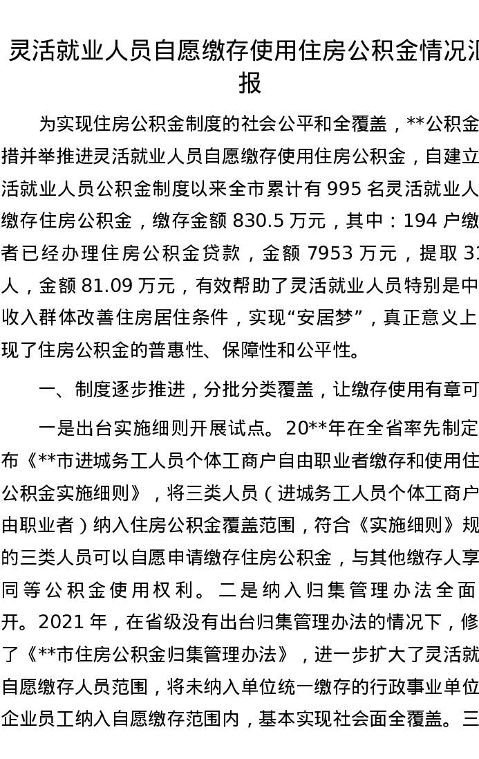 灵活就业人员自愿缴存使用住房公积金情况汇报