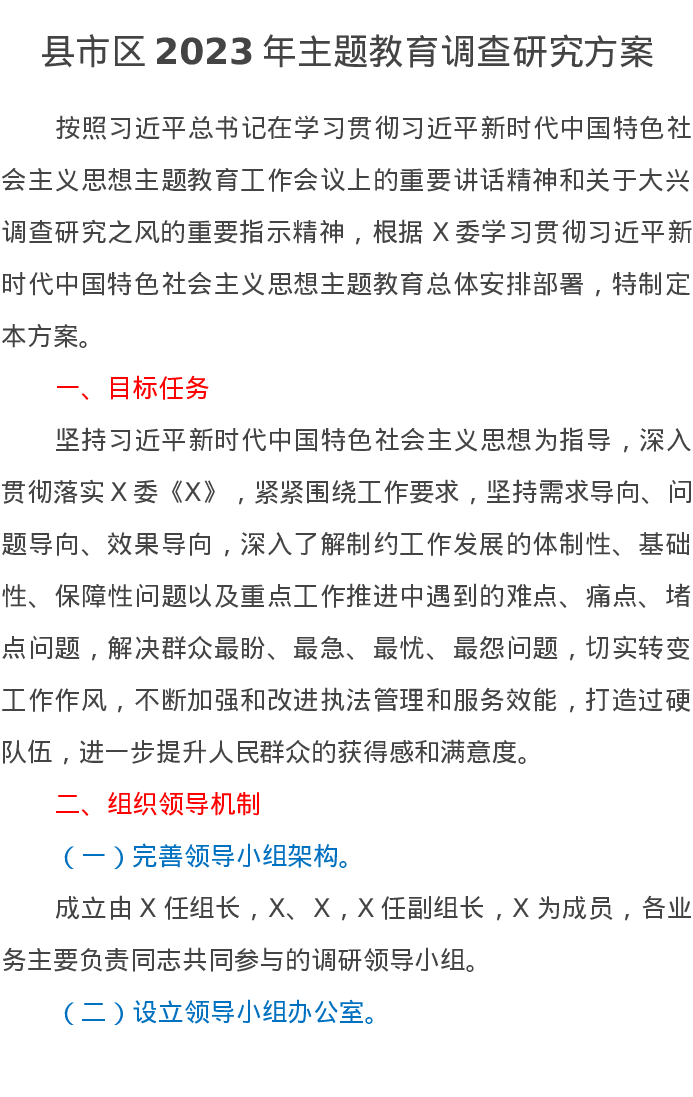 县市区2023年主题教育调查研究方案(特色社会主义思想)