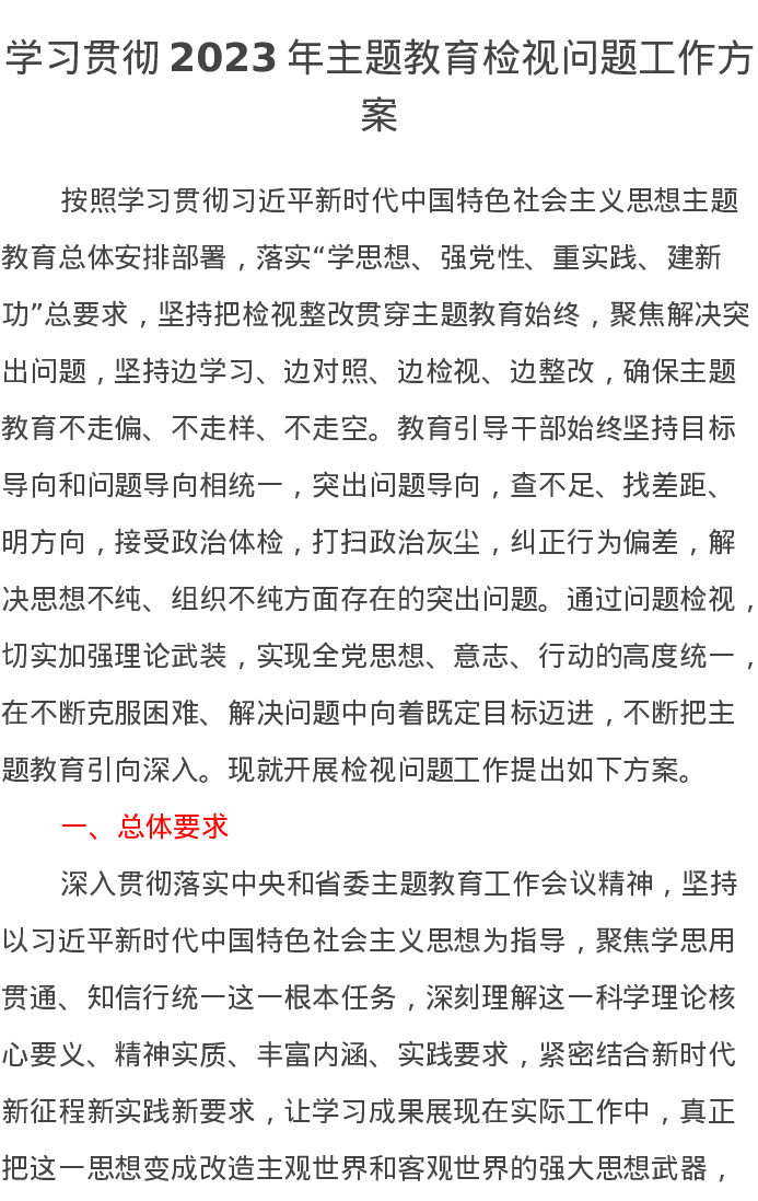 学习贯彻2023年主题教育检视问题工作方案(特色社会主义思想)