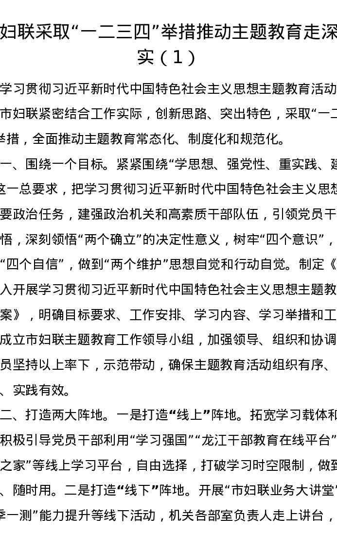 汇编:妇联学习贯彻新时代特色思想主题教育工作经验材料2篇(总结汇报报告)
