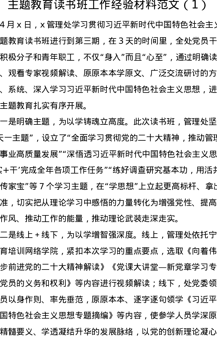 汇编:学习贯彻新时代特色思想主题教育读书班工作经验材料3篇(总结汇报报告)
