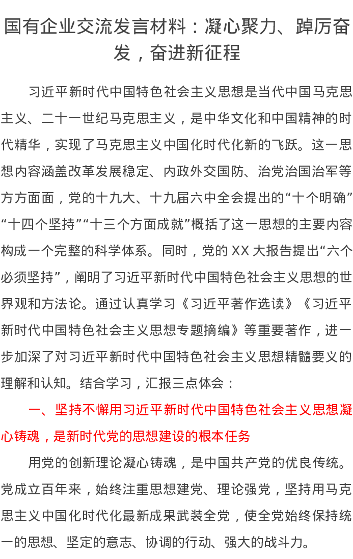 国有企业交流发言材料:凝心聚力、踔厉奋发,奋进新征程