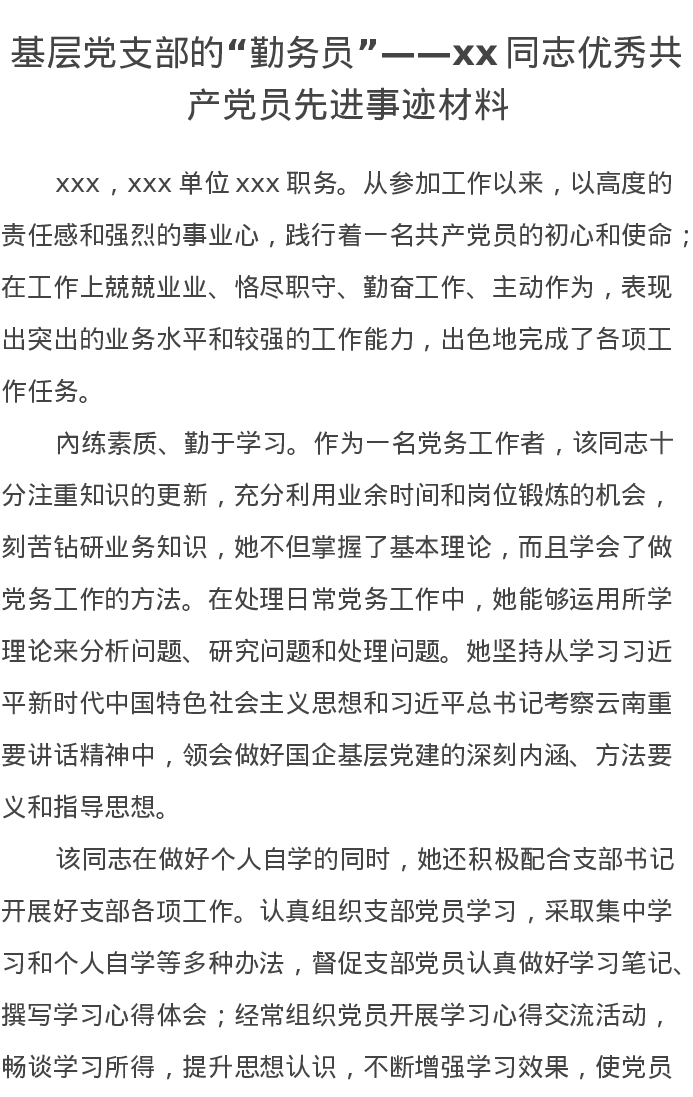 基层党支部的“勤务员”——xx同志优秀共产党员先进事迹材料