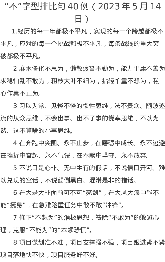 “不”字型排比句40例(2023年5月14日)