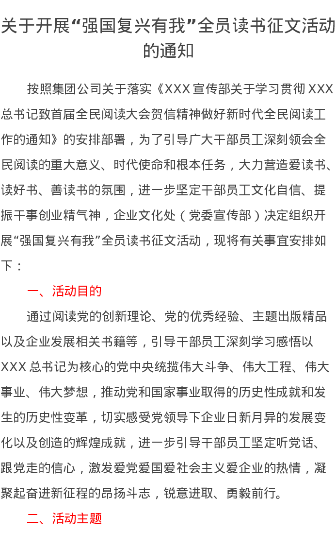 关于开展“强国复兴有我”全员读书征文活动的通知