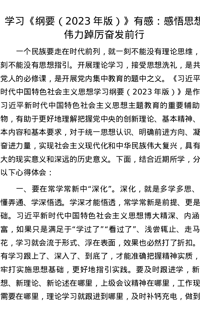 学习《纲要(2023年版)》有感:感悟思想伟力 踔厉奋发前行
