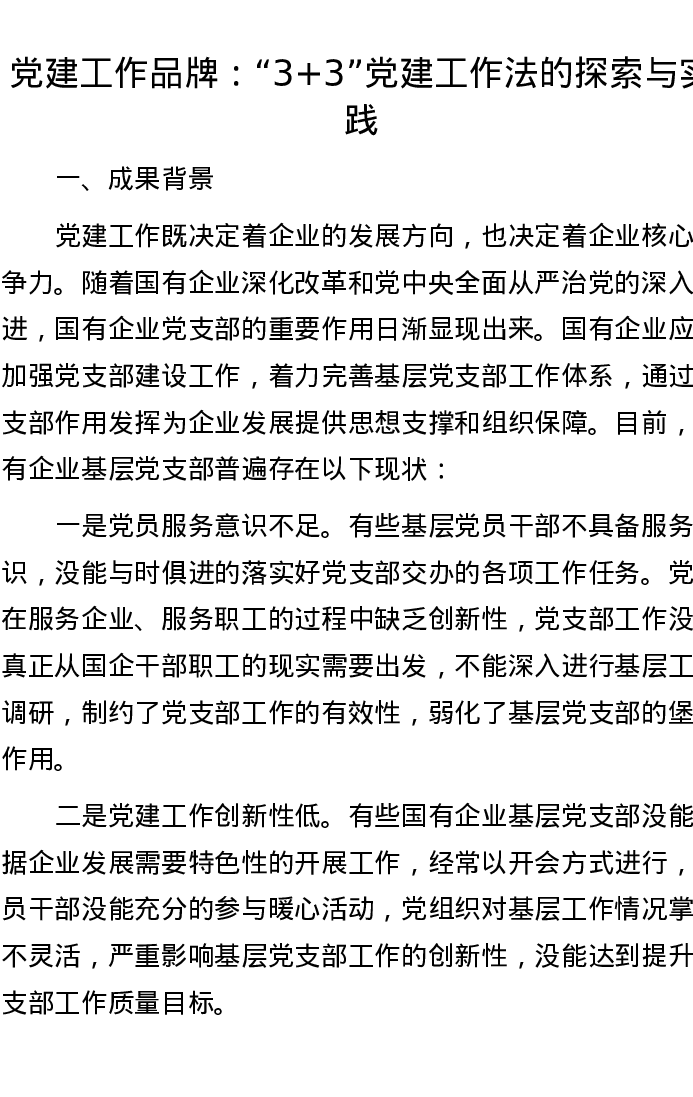 党建工作品牌:“3+3”党建工作法的探索与实践