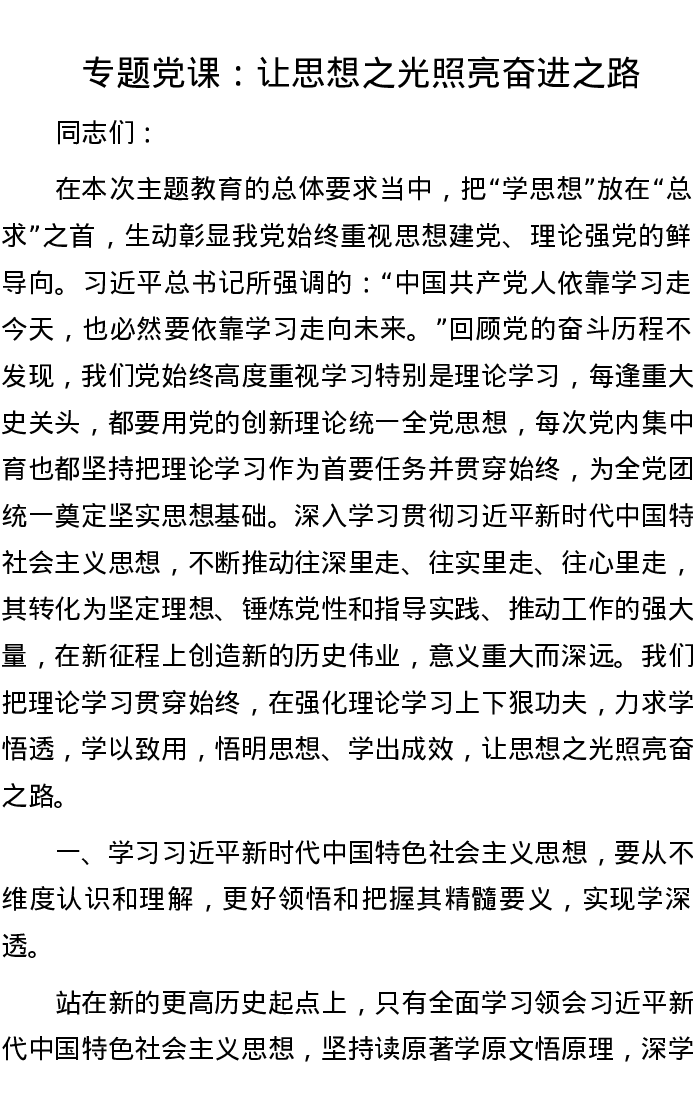 专题党课:让思想之光照亮奋进之路