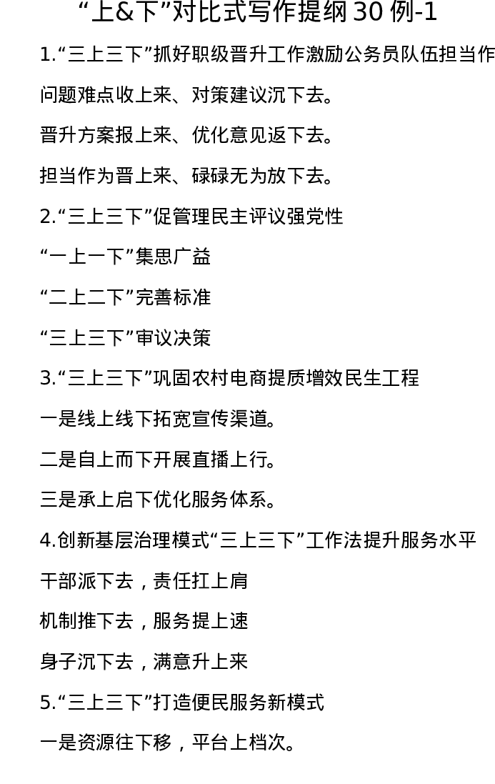 “上&下”对比式写作提纲30例-1
