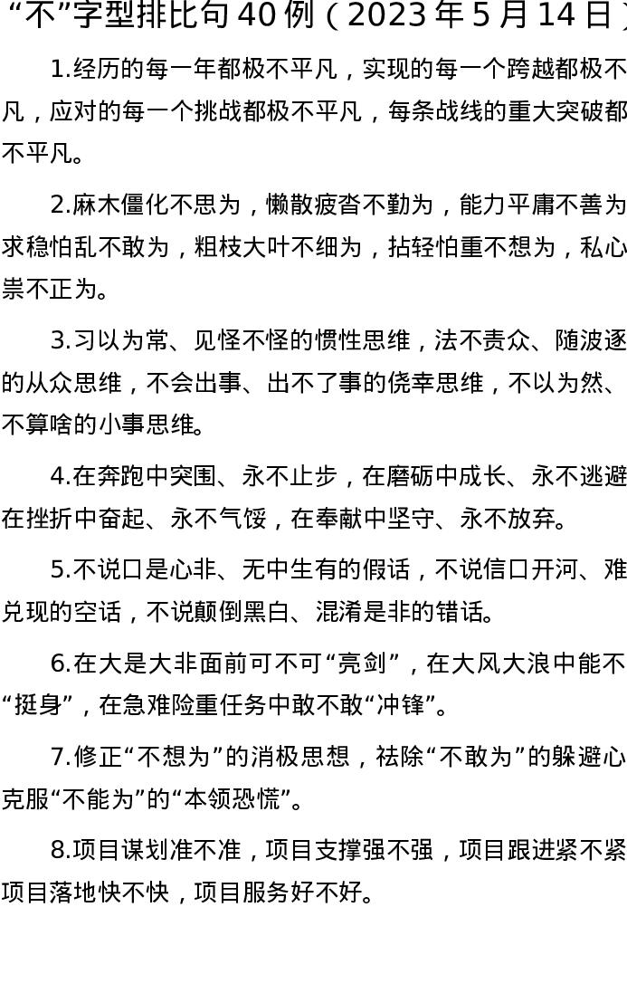 “不”字型排比句40例(2023年5月14日)