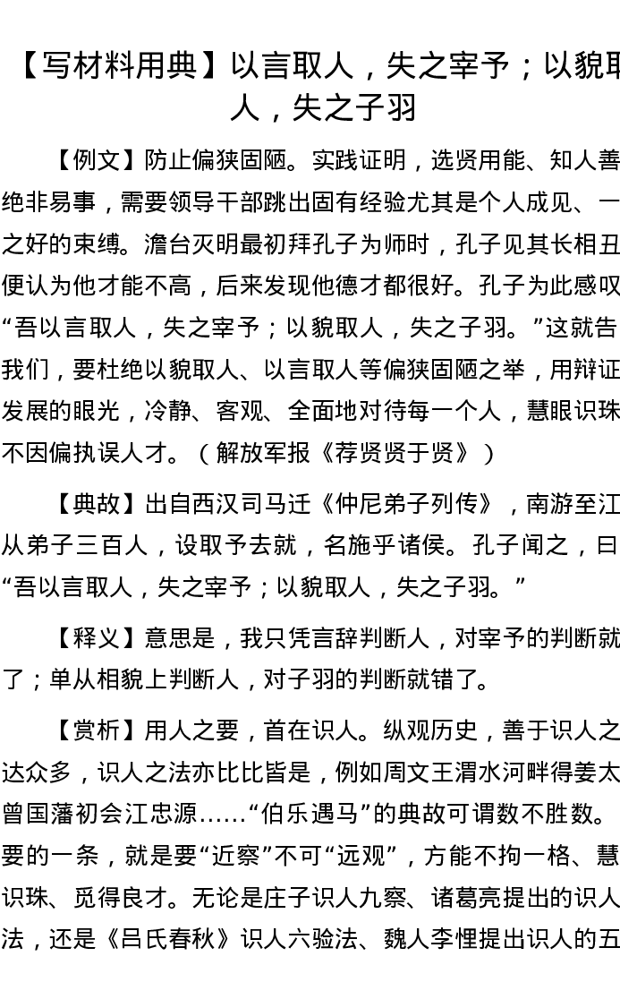 【写材料用典】以言取人,失之宰予;以貌取人,失之子羽
