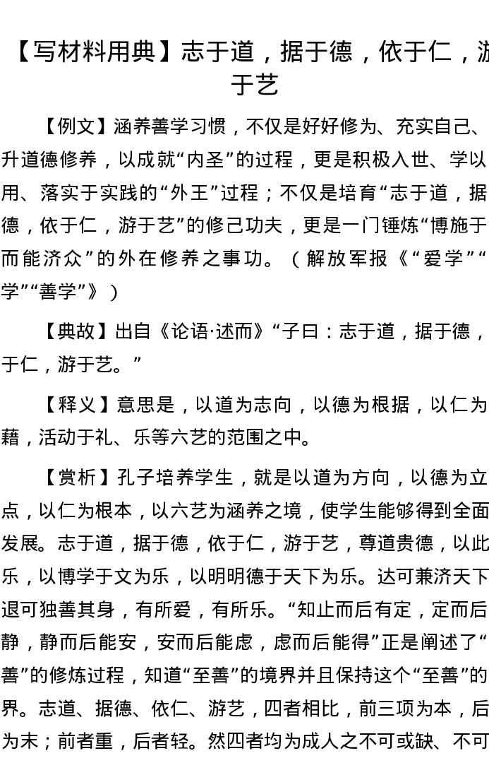 【写材料用典】志于道,据于德,依于仁,游于艺