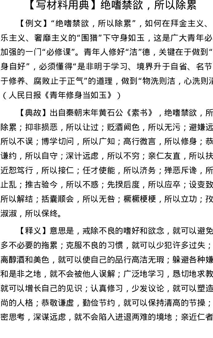 【写材料用典】绝嗜禁欲,所以除累