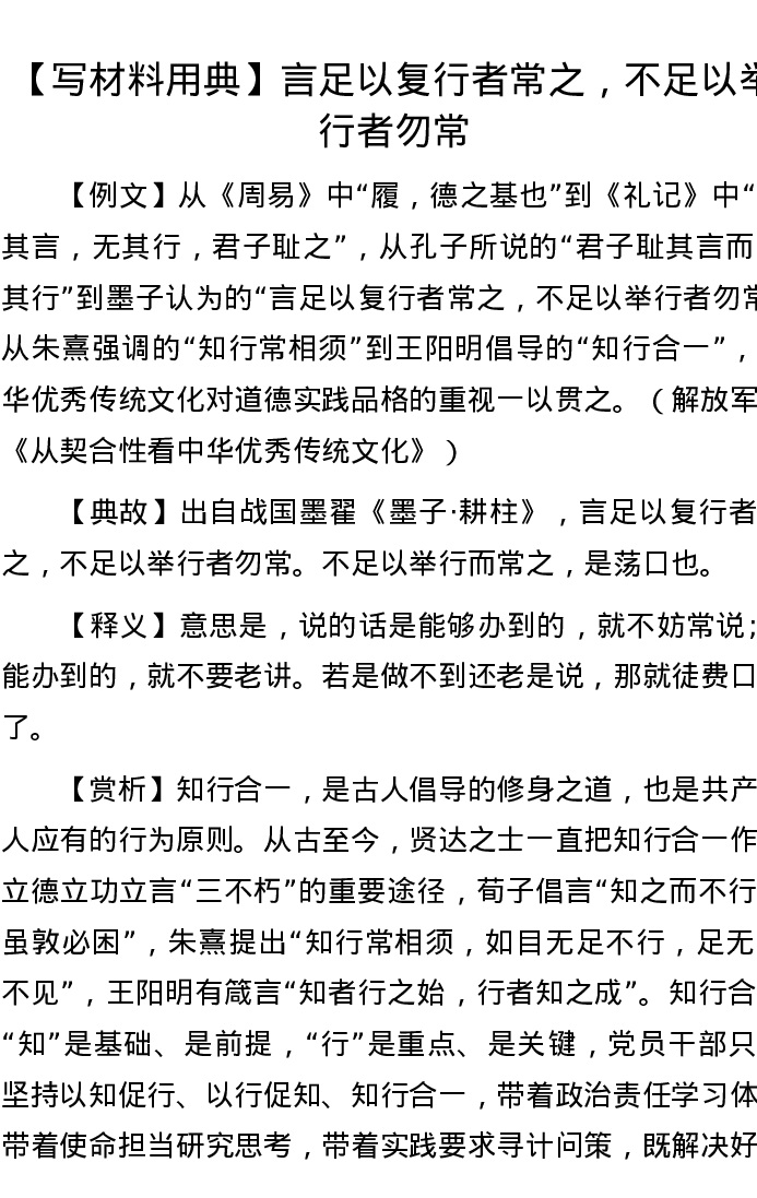 【写材料用典】言足以复行者常之,不足以举行者勿常