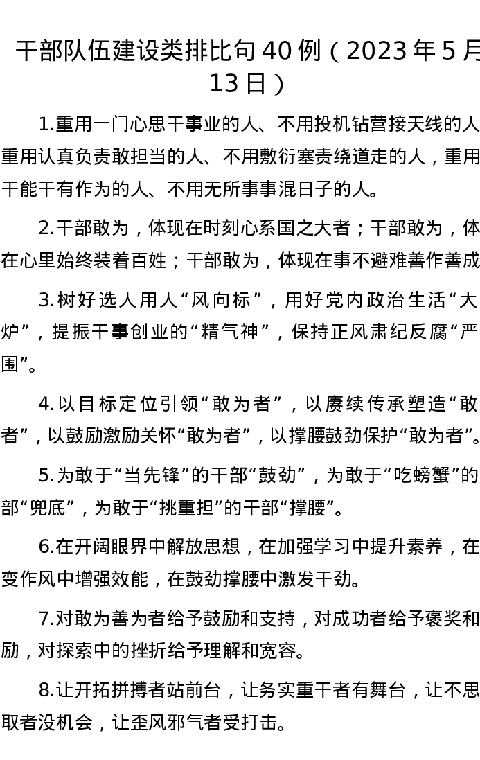 干部队伍建设类排比句40例(2023年5月13日)
