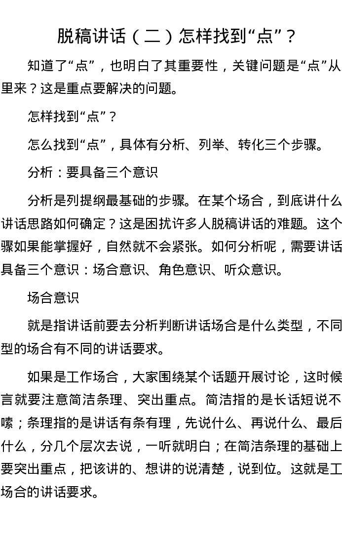 脱稿讲话(二)怎样找到“点”?