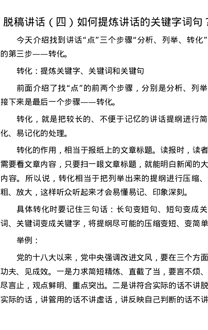 脱稿讲话(四)如何提炼讲话的关键字词句?