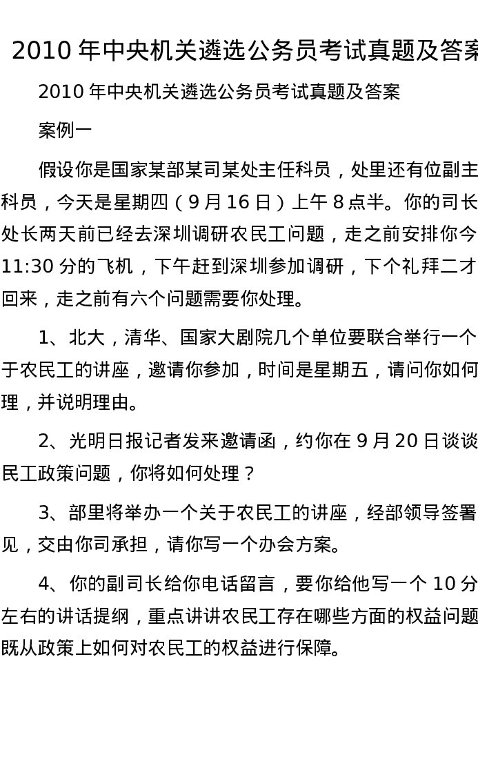 2010年中央机关遴选公务员考试真题及答案