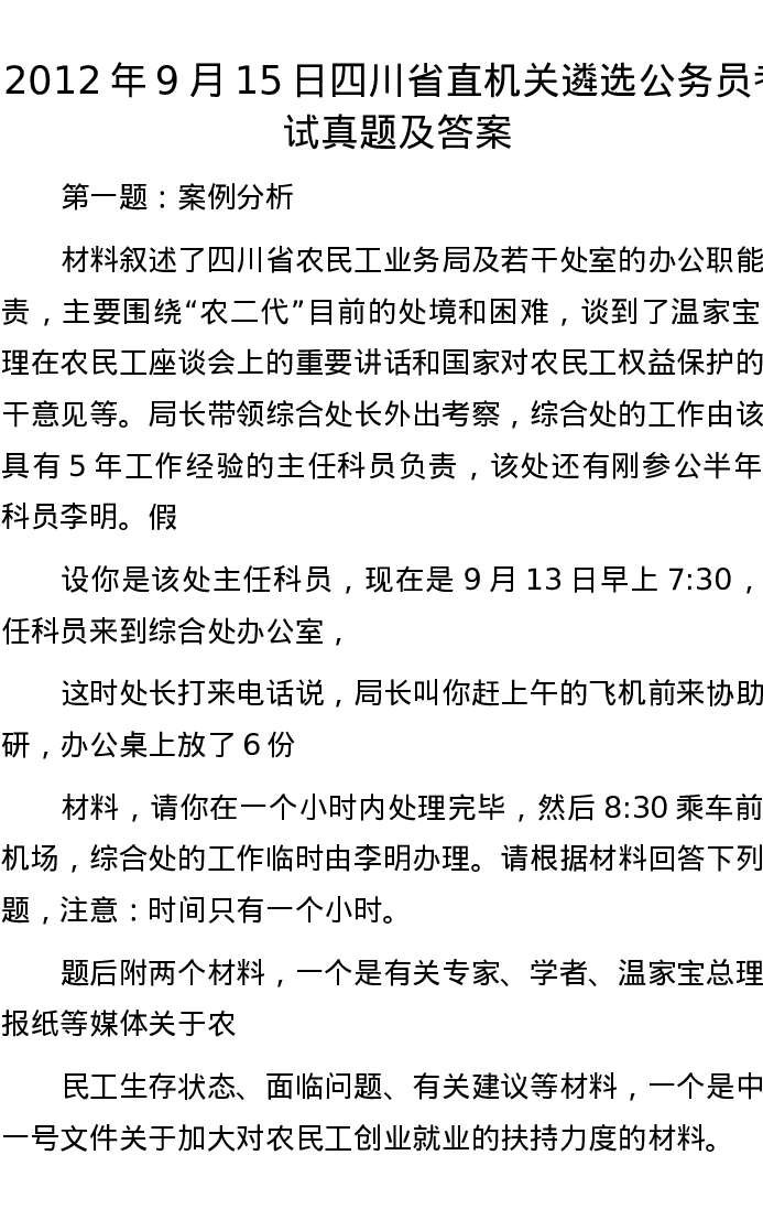 2012年9月15日四川省直机关遴选公务员考试真题及答案