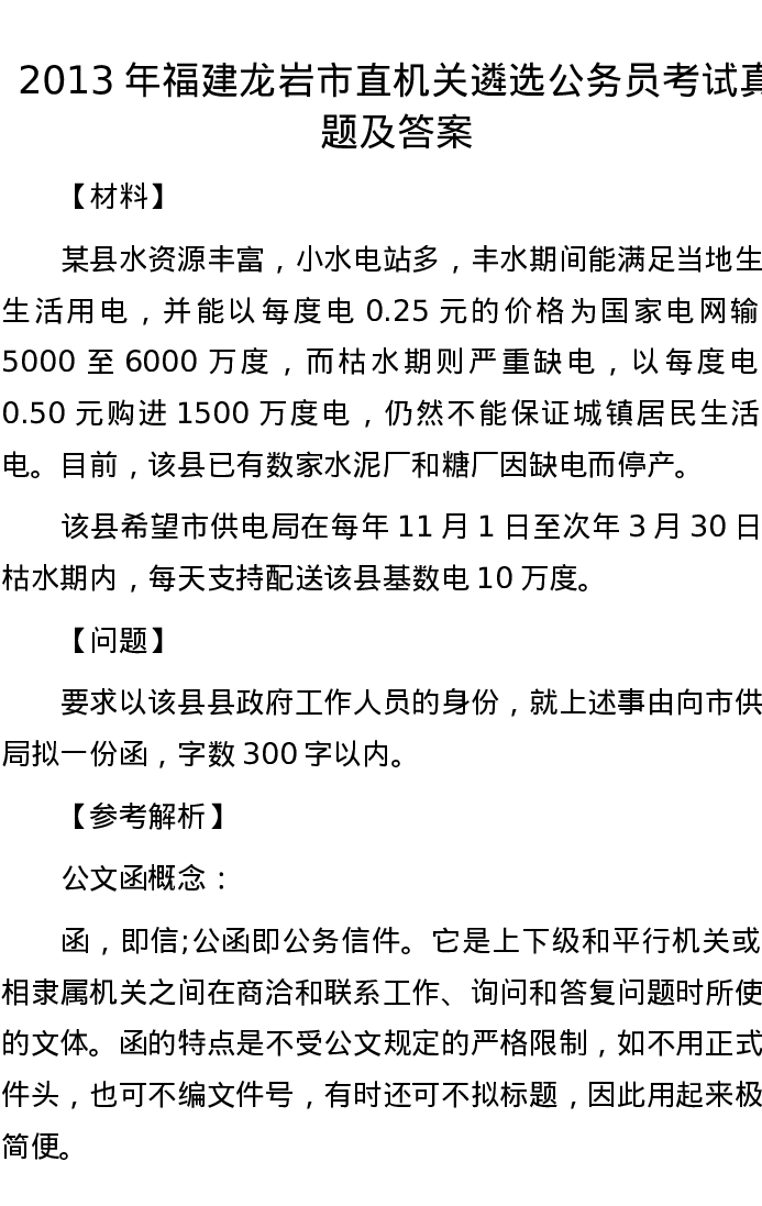 2013年福建龙岩市直机关遴选公务员考试真题及答案
