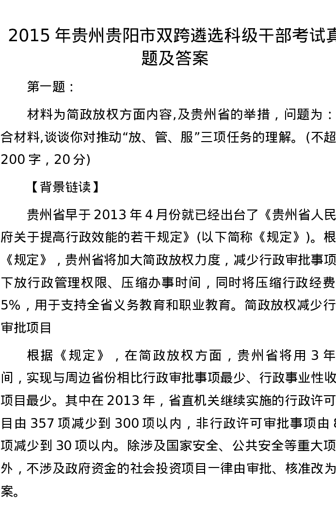 2015年贵州贵阳市双跨遴选科级干部考试真题及答案