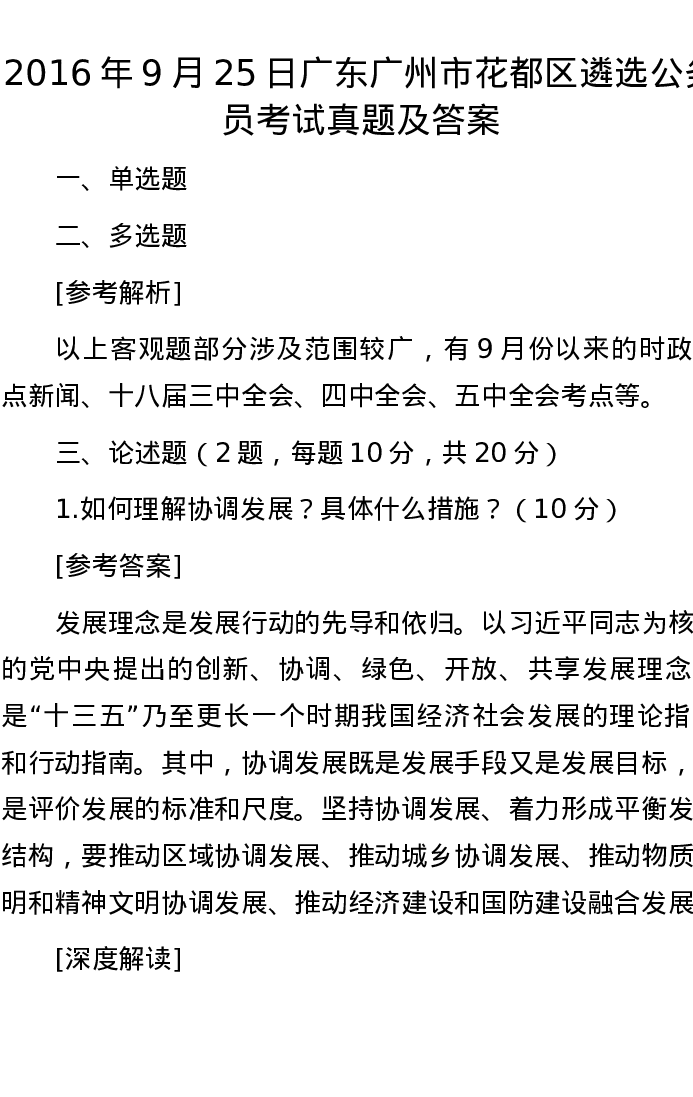 2016年9月25日广东广州市花都区遴选公务员考试真题及答案