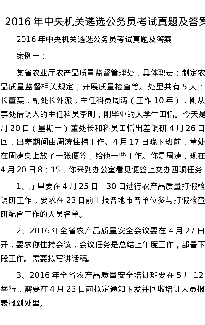 2016年中央机关遴选公务员考试真题及答案