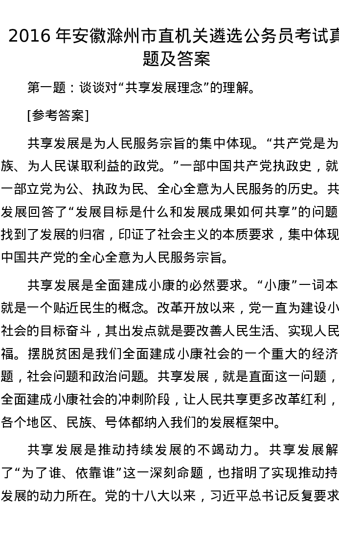 2016年安徽滁州市直机关遴选公务员考试真题及答案