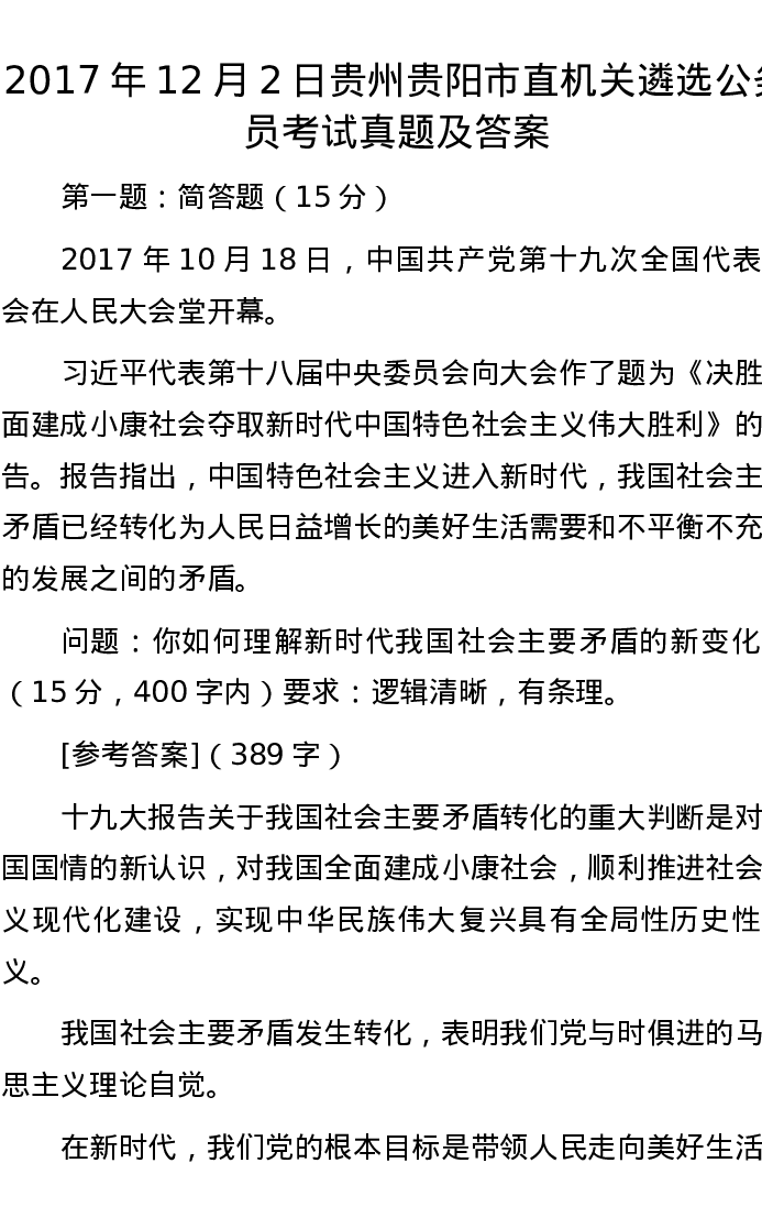 2017年12月2日贵州贵阳市直机关遴选公务员考试真题及答案