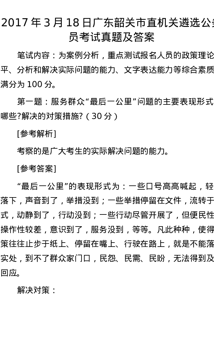 2017年3月18日广东韶关市直机关遴选公务员考试真题及答案