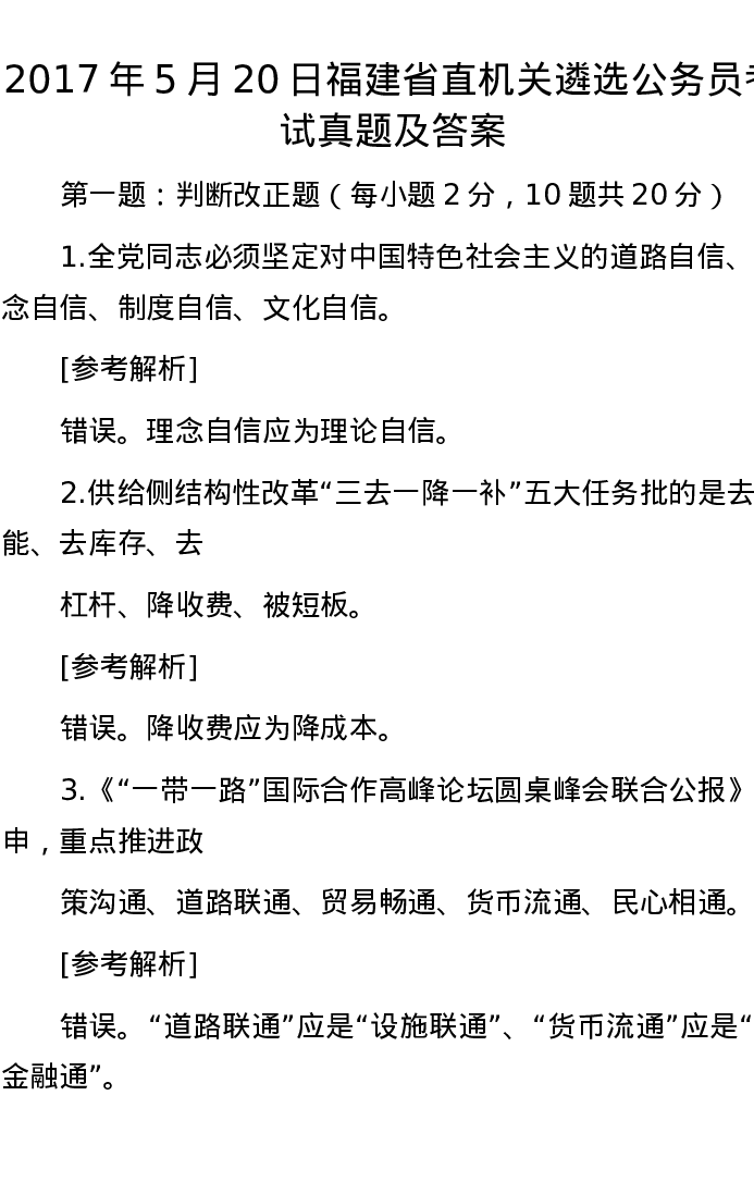 2017年5月20日福建省直机关遴选公务员考试真题及答案