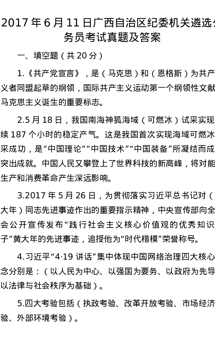 2017年6月11日广西自治区纪委机关遴选公务员考试真题及答案