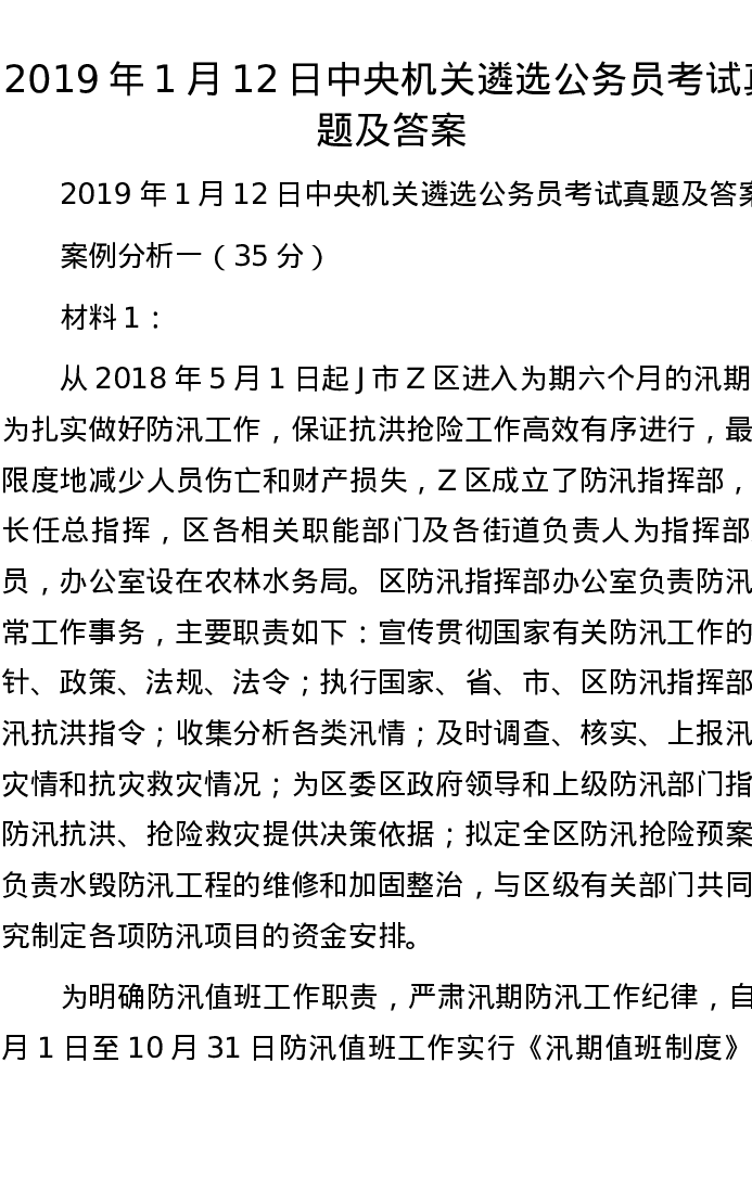 2019年1月12日中央机关遴选公务员考试真题及答案