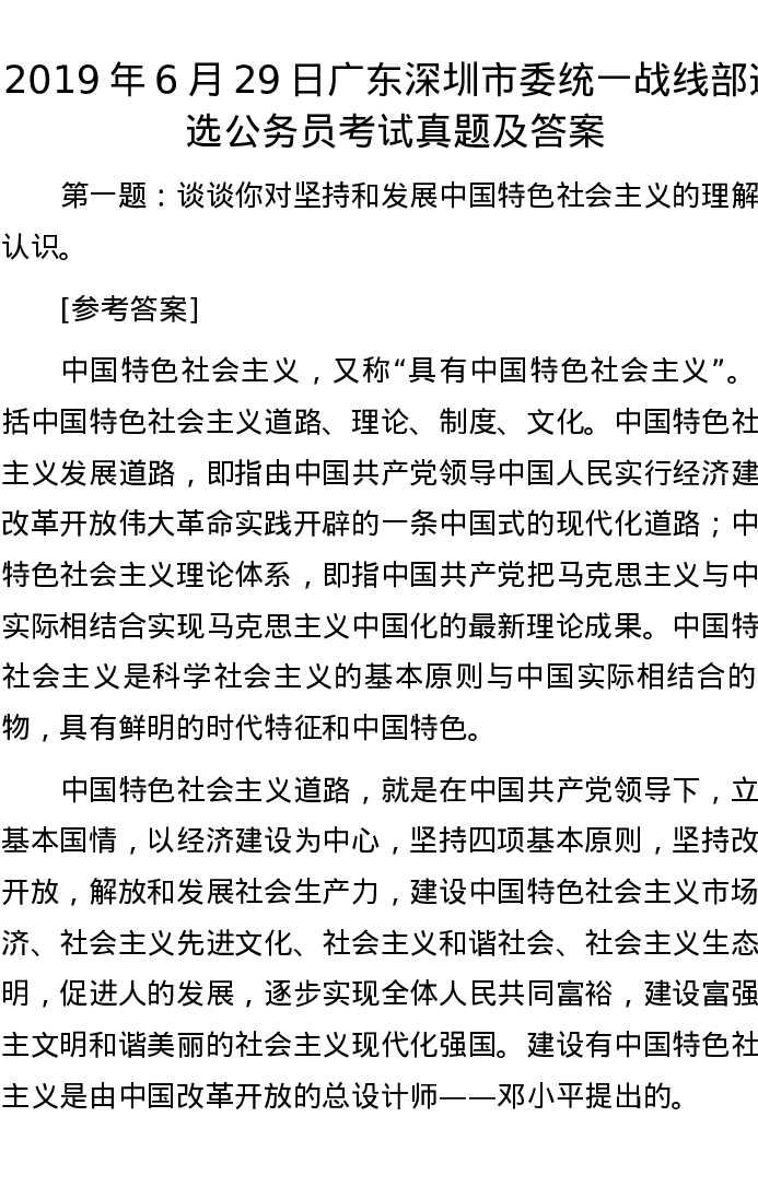 2019年6月29日广东深圳市委统一战线部遴选公务员考试真题及答案
