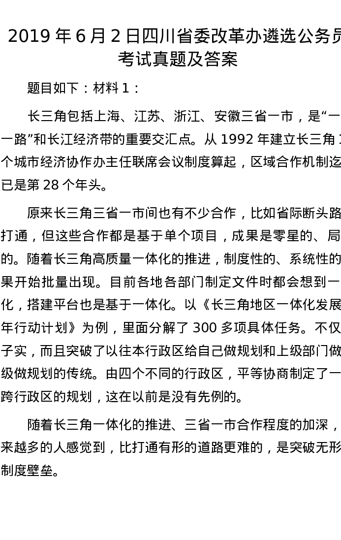 2019年6月2日四川省委改革办遴选公务员考试真题及答案