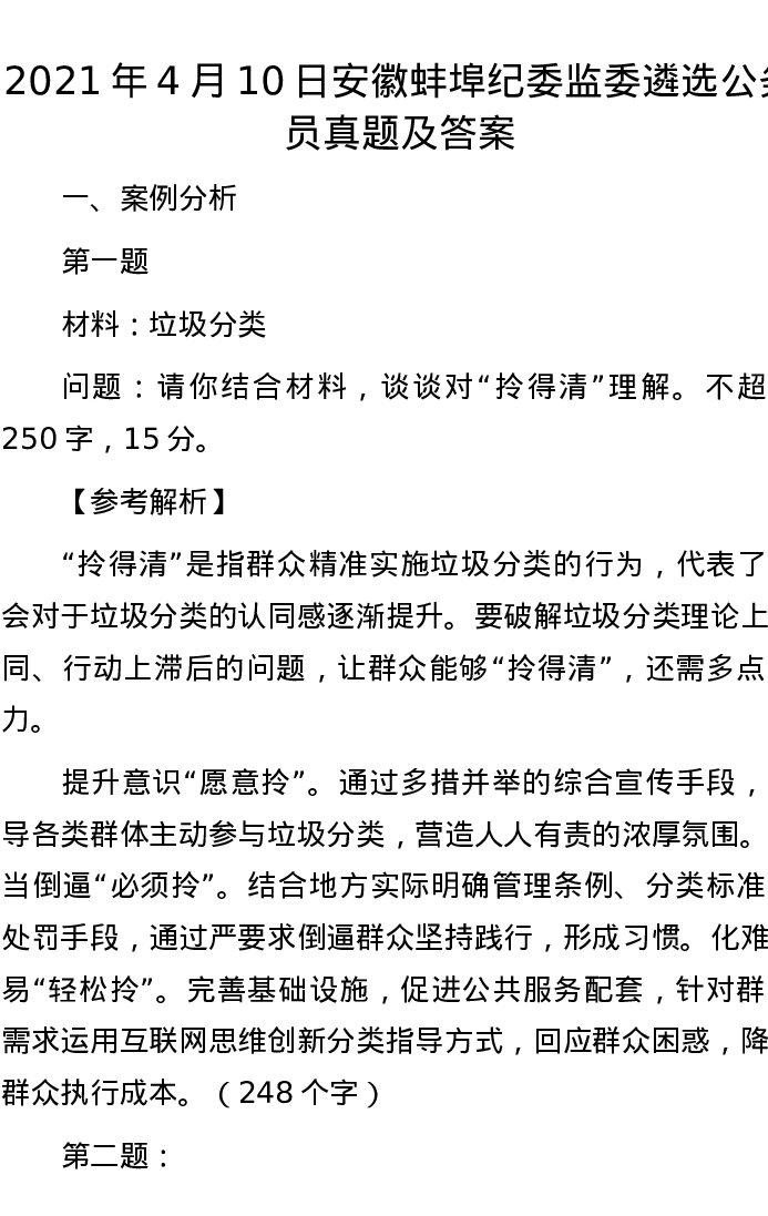 2021年4月10日安徽蚌埠纪委监委遴选公务员真题及答案