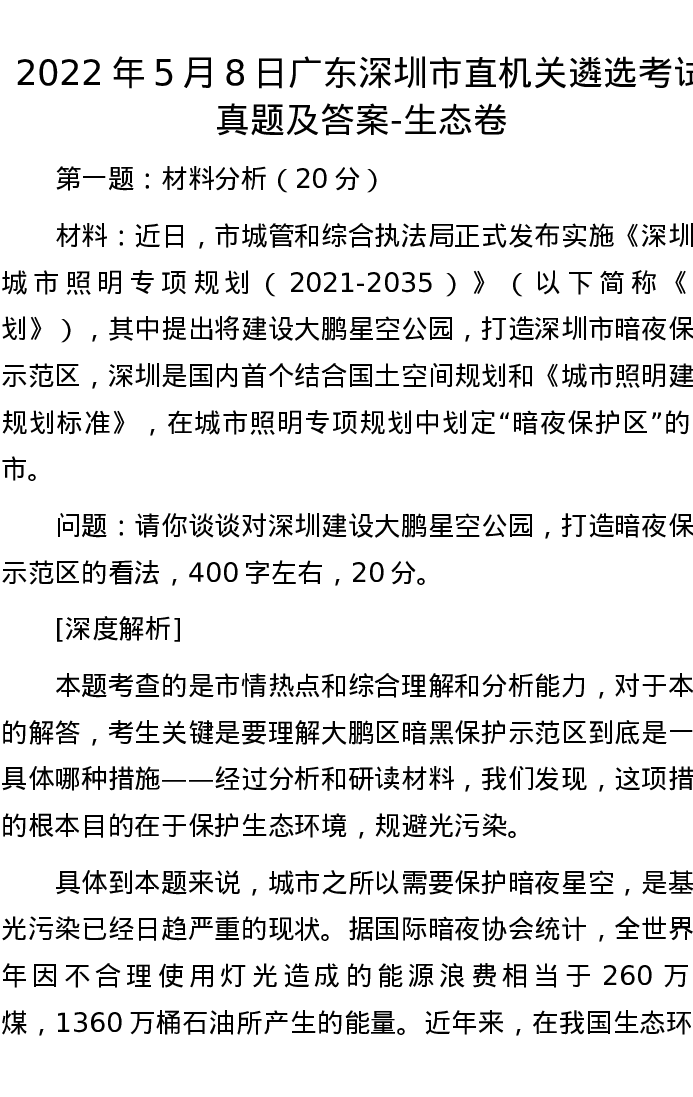 2022年5月8日广东深圳市直机关遴选考试真题及答案-生态卷