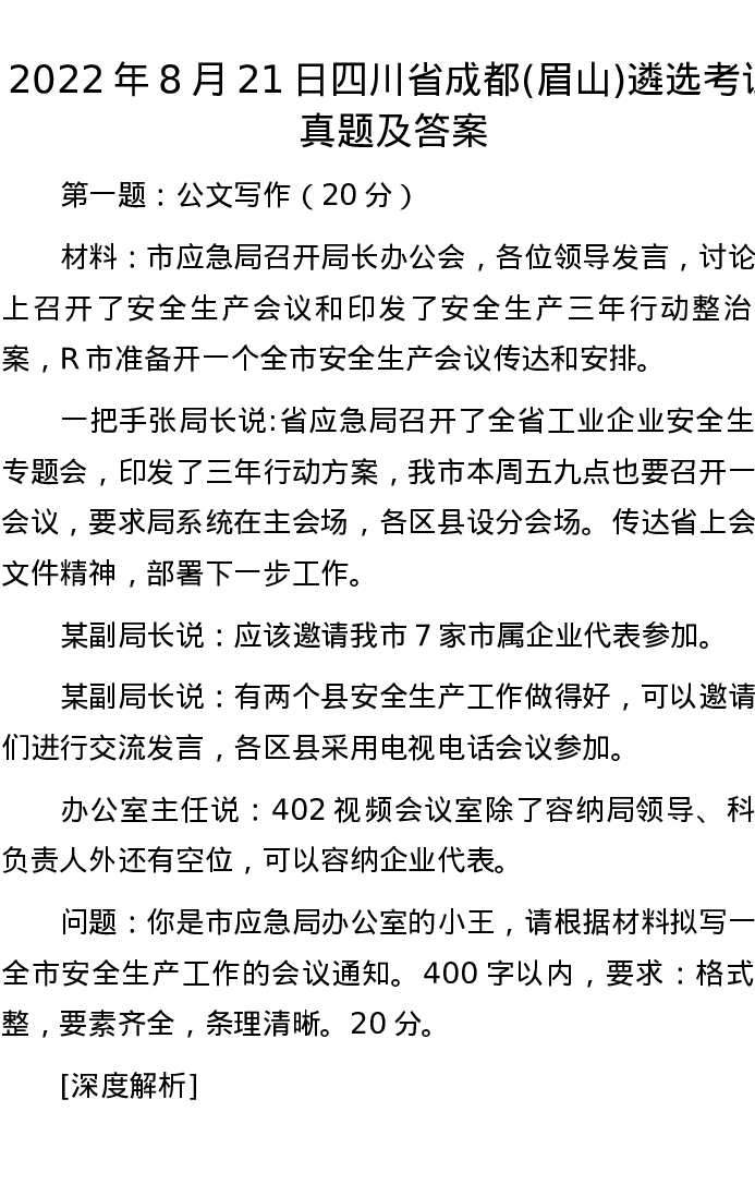 2022年8月21日四川省成都(眉山)遴选考试真题及答案