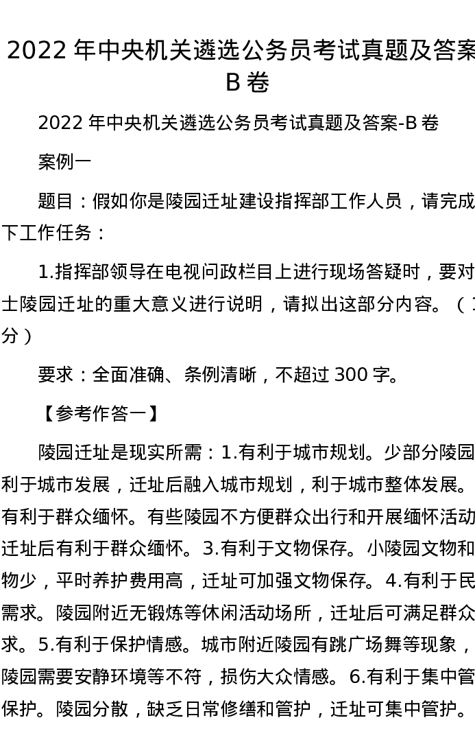 2022年中央机关遴选公务员考试真题及答案-B卷