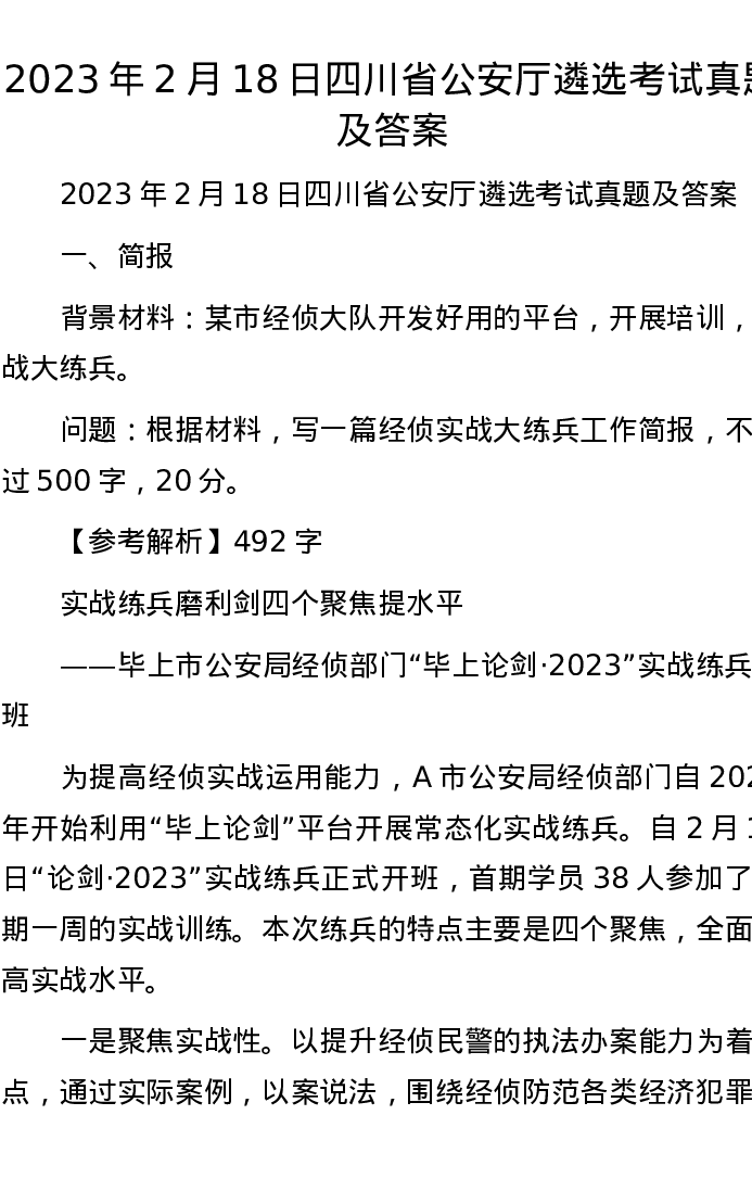 2023年2月18日四川省公安厅遴选考试真题及答案