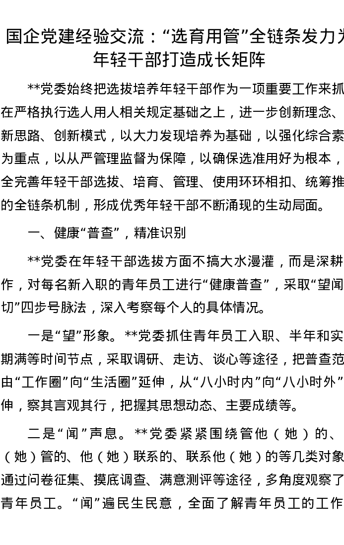国企党建经验交流:“选育用管”全链条发力 为年轻干部打造成长矩阵