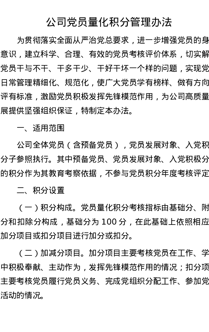 公司党员量化积分管理办法