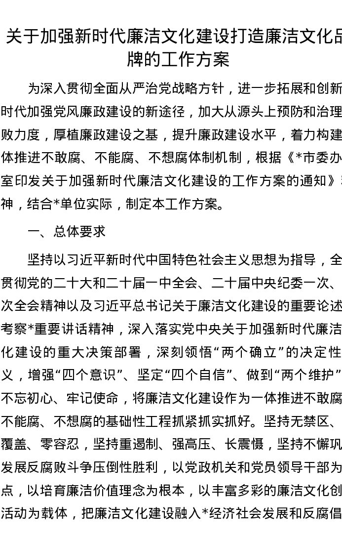 关于加强新时代廉洁文化建设打造廉洁文化品牌的工作方案
