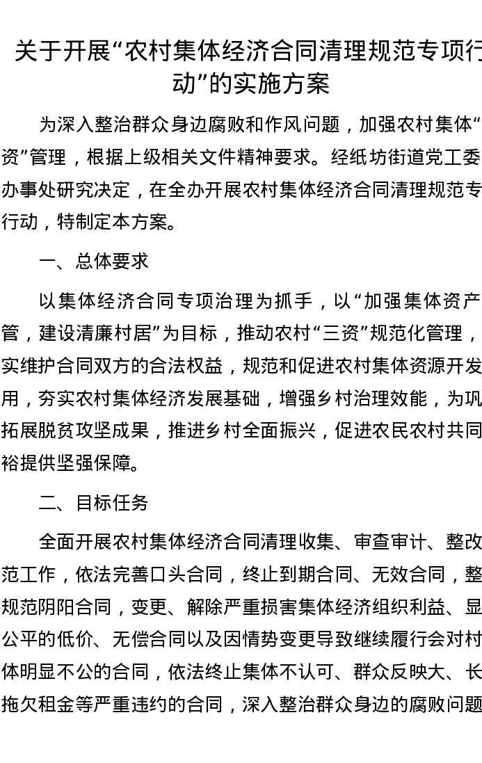 关于开展“农村集体经济合同清理规范专项行动”的实施方案