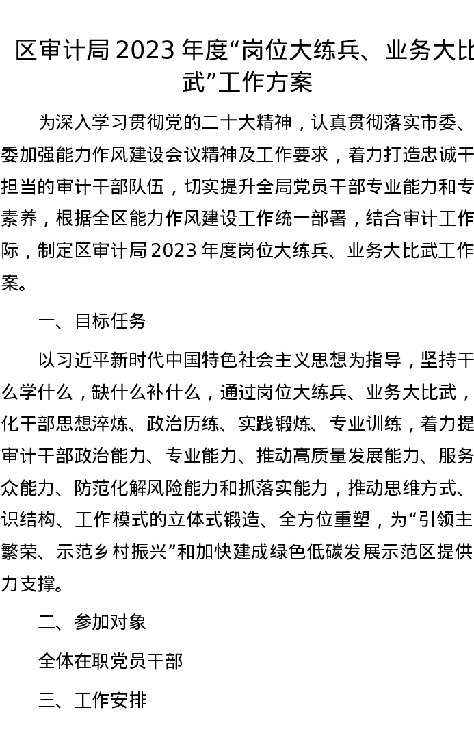 区审计局2023年度“岗位大练兵、业务大比武”工作方案