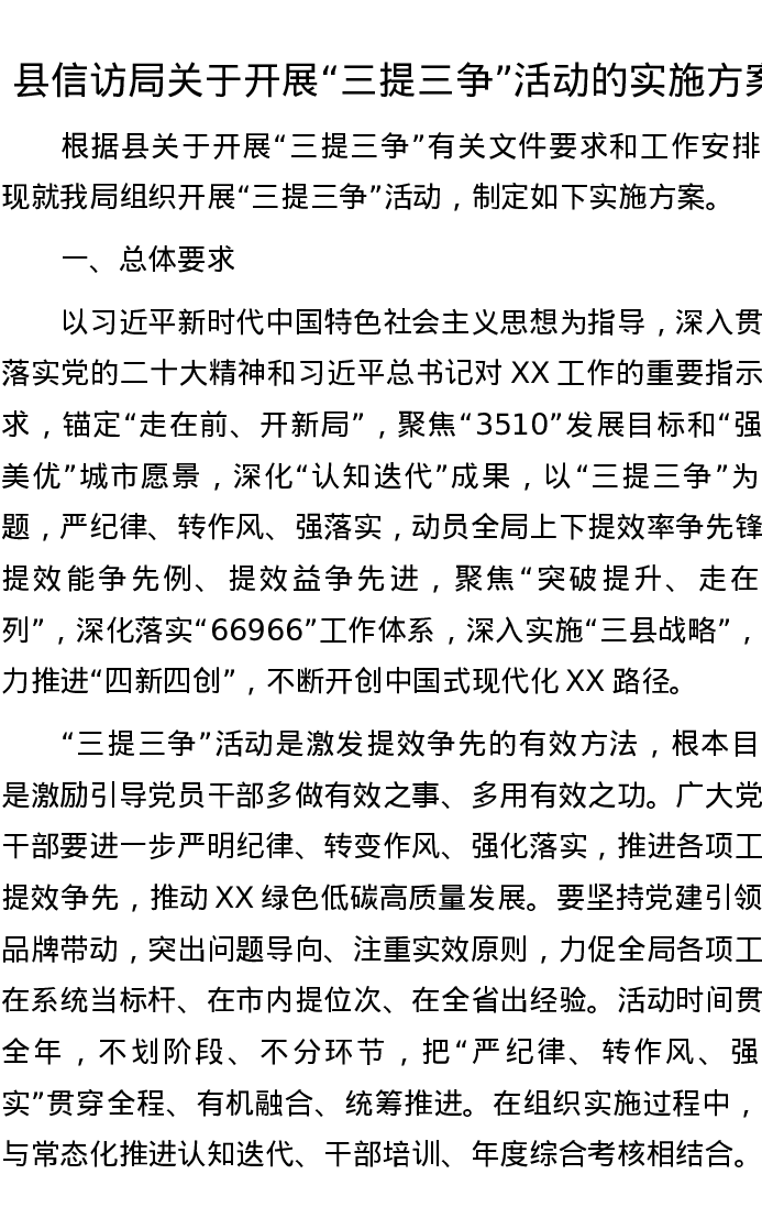 县信访局关于开展“三提三争”活动的实施方案