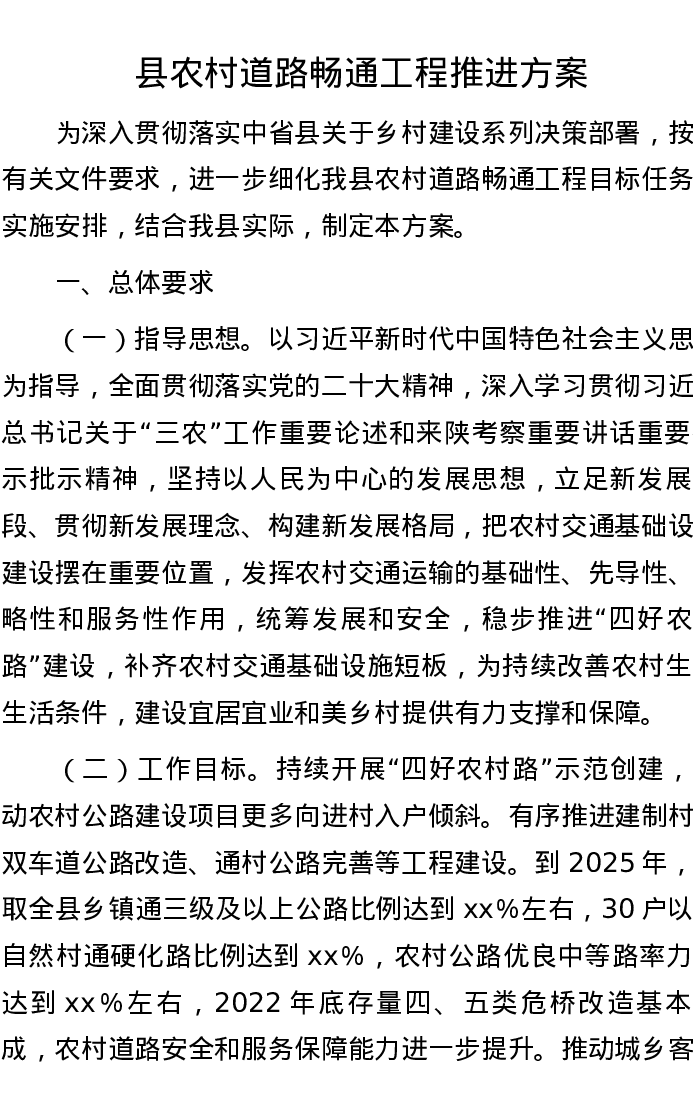 县农村道路畅通工程推进方案