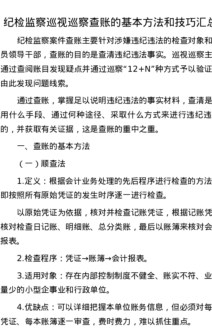 纪检监察巡视巡察查账的基本方法和技巧汇总