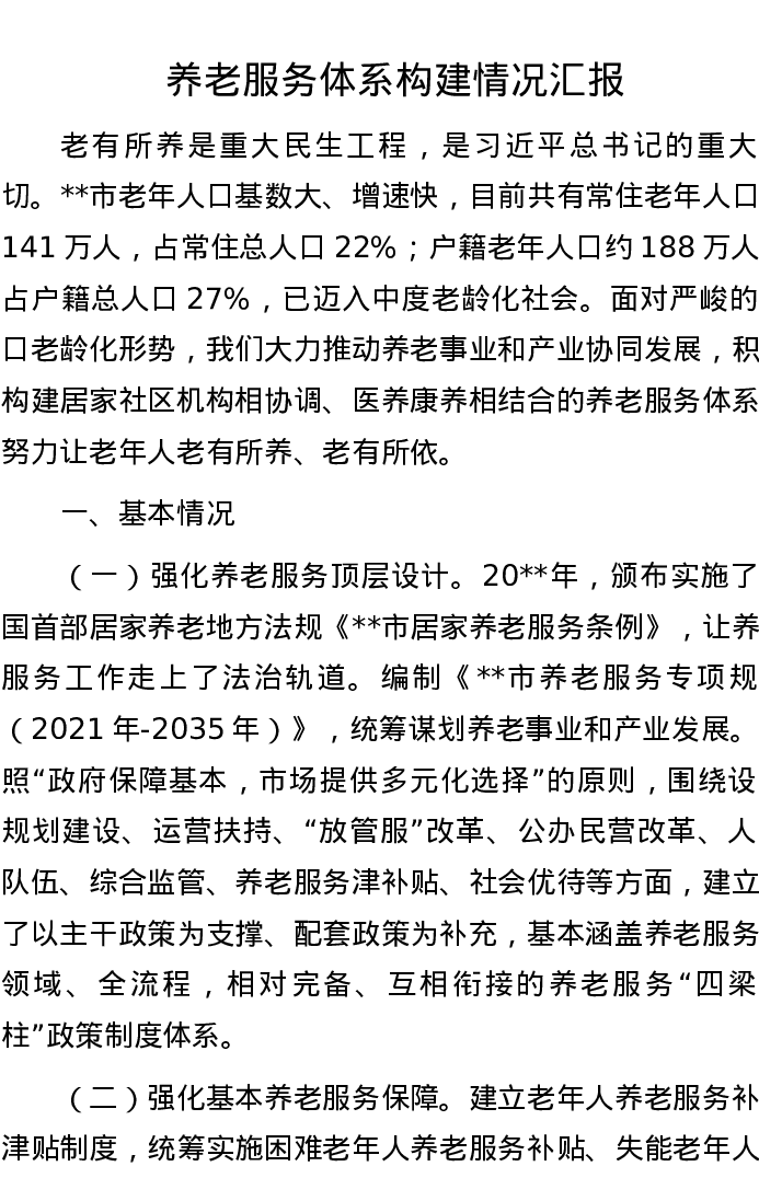 养老服务体系构建情况汇报