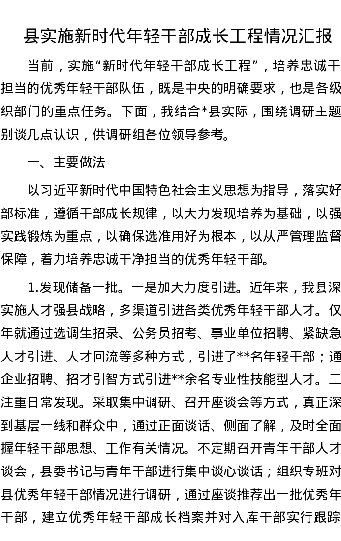 县实施新时代年轻干部成长工程情况汇报